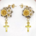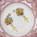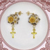 ご覧いただきましてありがとうございます。 樹脂粘土製のパーツ、リーフコネクター、十字架チャームを使用したピアスです。 黄色のバラにあわせて、薄黄色のパールビーズとゴールドカラーの金具を選んで組み合わせました。 十字架チャームが耳元で揺れる、可愛らしいデザインのピアスです。 ピアス金具はサージカルステンレス製のものを使用しています。 写真ではスタッドピアス(サージカルステンレス)でお仕立てしていますが、お好きなパーツへの変更も承ります。 ご希望のパーツを選択していただきますようお願いいたします。 サフィックス社のスウェットバリアを使用しての金属アレルギー対応も可能です。 ご希望の方は右のメニューより「金属アレルギー対策有」の項目を選んでください。 ※注意※ ☆お花のパーツは樹脂粘土でできています。性質上強い力や水濡れに弱いので、やさしいお取り扱いをお願い致します。 ☆定形外郵便でのお届けのみとなります。 【Size】 全長約4.3cm ・ブーケ:約1.7cm×1.9cm ・十字架チャーム:1.3cm×8mm
