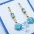 【潮騒の記憶】ターコイズの貝殻とチェコガラスのピアス ゴールド金具 イヤリング変更可能