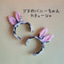 バニーちゃんカチューシャ、ブチ模様です。色味は1枚目が近いです。 10cmのぬいぐるみ向けに制作しております。 (12cmサイズでも大丈夫かと思いますが、所持しておらず、着用感がいまいちわかりません。すみません!) ハンドメイドになります。粗い部分もあるかと思いますので、気になる方はご遠慮下さい。 同じ商品でも、模様の出方やカチューシャのカール具合に個体差があります。 ■カールが他よりゆるいものはB品として頒布致します。2枚目画像をご参照ください。ご了承の上、ご購入ください■ 着用画像については、Twitterをご参照ください。 宜しくお願い致します。 ******** BOOSTとても嬉しいですが、お礼などはご用意出来ません。お気持ちだけで十分です!ありがとうございます!!