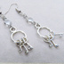 アンティークシルバー 複数の鍵を吊るしたコンパクトなピアス ラインストーン 鍵束ピアス サージカル可