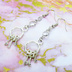 複数の鍵を吊るしたモチーフにラインストーンを組合せたコンパクトなピアスです アンティークシルバーにカラーを統一して華やかさと落ち着きを演出します ラインストーンを鍵モチーフの上に組合せて輝きをプラスしています シンプルそうでコンパクトなピアスに仕上がっているので普段使いはもちろんのことちょっとしたお出かけにもおすすめです ※モチーフは亜鉛合金にメッキ加工、金具などはスチール製ですので、金属アレルギーの方はご注意ください ※こちらはフックピアスをネジバネ式イヤリング(シルバーカラー 丸皿タイプ)に変更が可能です ※金属アレルギーになりにくいとされるサージカルステンレスのフックピアスに変更できます 「材質」 亜鉛合金:メッキ加工 ラインストーン スチール等(金具など) 「大きさ」 全長(ピアスな金具含まず):約38mm 鍵束サイズ:約22mm×14mm 「重量」 (ピアスひとつで)約1.5グラム ※ご使用のモニターの色の違いにより、実際の商品と色味が若干異なる場合がございます。予めご了承ください NA-ER130