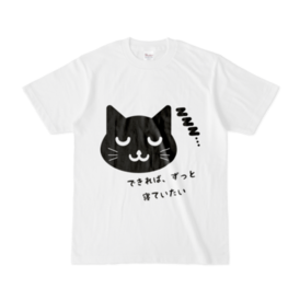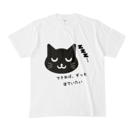 Tシャツ - XL - 白この商品はpixivFACTORYで作られた商品です。サンプル画像は完成イメージのため、実物と異なる場合があります。 たくさんの商品の中から私の商品を見つけていただきありがとうございます。猫たちが「できれば、ずっと、寝ていたい」と思いながら寝ているように見えたので、イラストを描いてみました。今回は黒猫バージョン、あと、他の種類の猫たちも描いていきます。よろしくお願いします。