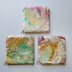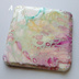 絵具を流し込んで模様を描く"フルイドアート"の小さな原画。 カラフルな貝殻をイメージした、ハッピーで爽やかな作品群。 ■一点もの 全3種 ※セット販売ではありません ■石材+アクリルペイント ■10cm×10cm 高さ約1cm ※少々個体差あり ■裏面四隅にソフトな足付き 表面にこだわりのニス加工を施し、まるで濡れているような透明感に仕上げました。 石材の適度な重量とひんやりした手触りが、絵画というより陶器やスライスした鉱石を思わせます。 コースターとして使用することも可能ですが、使用環境によってはコーティング層の変色・変形がおこる場合があります。 ※個体により表面に微細なヒビ有り。これは制作過程で発生するもので、破損ではありません。 ★★ 複数購入ご検討の方へ ★★ フルイドアート原画/タロットカード のご購入は、発送の都合上、一回のご注文につき合計4点までとさせていただきます。 5点以上ご希望の方は、お手数ですが数回に分けてご注文ください。