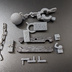 噂に聞いていた通り、そこはゆうに百名は超える奴隷がいました。 奴隷は例外なく妙齢の娘たちです。 奴隷たちの顔色も、纏う雰囲気も様々でした。 誇りを失わずに、胸を張ってしゃんとしているものもいれば、首を垂れ、肩をすぼませて地面を見つめている者もいました。 変わらないのは、拘束具、でしょうか。 【拘束具】 奴隷たちの首元には、手首ほどの太さのある、重い金属製の首輪。 両の手首には、数多の奴隷の汗と涙を吸い込んだ、自由を奪うための木製の枷。 足首にも鎖。 その先には、意思を持って引きずらなければ動かない、鈍色の鉄球が括り付けられているのです。 それらの枷は――すなわち首輪、手枷、足枷は――手が自由に使えたならば、簡単にはずせたであろう、簡単な鍵で結えられています。 見えていて、仕組みがわかり、しかし自分で外すことはできません。 この、もどかしく、やるせなく、打つ手のない無力さを奴隷たちに味合わせることそのものが、トトノ商会の狙いであるのだそうです。 奴隷商人として大成するための武器として、ひとの心の機微にまで気を配っていたのですね。 そんな、繊細な雰囲気に気を配る方々のお店です。 すぐに、わたしの姿を見つけて、とんでいらっしゃいます。 ――いらっしゃいませ。今日は何をお探しでしょう? トトノさんが、わたしの姿を認めて、とんでいらっしゃいます。 軒先でおもちゃを売るかのような気楽さでひとを売買できるようになるまでに、何年の修行を積まれたのだろうと、いつも思います。 まあ、それを言うのであれば。 女の子を『いじめる』お手伝いをしているわたしの方が、よっぽど罪深いのですけれど。 【商品説明】 ・送付物は6枚目になります。(フルセット場合) ・足枷は7枚目を参照ください。 ・レジンで出来ているようです。 ・レジンに着色する形で、雰囲気を演出しています。 印刷ロット毎に、多少のばらつきが発生すます。 ・塗装はしていません。 ・表面にざらざらした加工が施されています。 未塗装でも映えます。ちょっと色を置くと、もっと映えます。 ・木材と金属のような外観ですが、レジンで出来ています。 ・見た目より、軽いので、びっくりする方が数多くいらっしゃいます。 ・金具は細くて折れやすいので、注意して扱ってください。 ・サポート材の痕は未処理です。 ・仮組は出来ますが、嵌合は緩いため、ヤスリや接着剤での微調整をご提案いたします。 ・鎖の輪の数は、娘さんたちに合わせて調整してください。 ・人形(フィギュア)、その他ジオラマはサイズ感、使用例です。付属しません。 ・表面にベタつきがある場合、陽光で半日ほど天日干しにしてください。 こんな陰鬱な『器具』を、天日干し……? 【購入に際して、事前に確認いただきたいこと】 3Dプリント出力品は、薄さ、細さ、長さに応じて、パーツに反りが発生します。 ――木材や金属より繊細だ、ということはわかりました。 出荷時には問題なくとも輸送時の環境(温度状態)や時間経過とともに反り、変形が経時変化として発生することがあります。 出荷時に検品し、問題なことを確認して発送いたしておりますが、出荷後に変形したものまでは責任を負いかねます。 当ショップの商品は、3Dプリント出力品です。したがって、商品には必ず『個体差』が生じます。 メーカーの射出成型品のような品質をお望みの方には当ショップの製品はご満足いただけない可能性がございます。 ――貴族さま方の言葉は、平民のわたしには知るよしもありませんね。 ご主人様が、わたしたち領民のために商人とお付き合いがあるということだけは理解しました。 ――女の子を『いじめて』『よろこぶ』『悪癖』がなければ、素晴らしいご主人様なのですけれど。