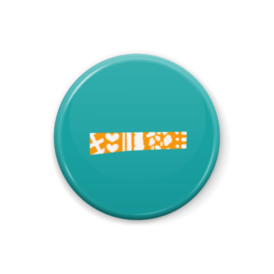 柄文字缶バッジ 「-」 (オレンジ×緑)
