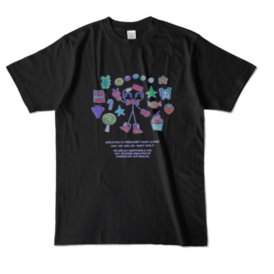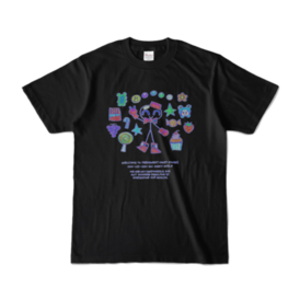 b black XL🌈PERMANENT SUGAR T-shirt [wonder color]🌈 書いてある文字: パーマネントキャンディストアへようこそ! 000-123-456-666 OZett 2023.5 当社のスナックの食べすぎによる被害に当社は責任を負いません。 https://ozett.o-oku.jp/permanentcandyinc WHITE: https://ozett.booth.pm/items/4808195 この商品はpixivFACTORYで作られた商品です。サンプル画像は完成イメージのため、実物と異なる場合があります。