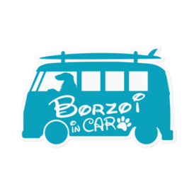 【プリントステッカー】Borzoi in CAR ターコイズブルー