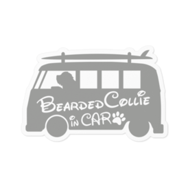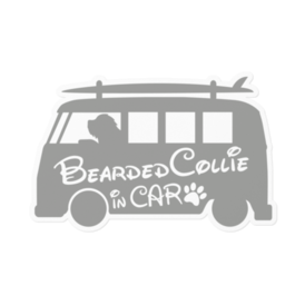 【プリントステッカー】 Bearded Collie in CAR アッシュグレー