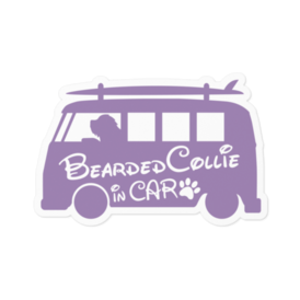 【プリントステッカー】 Bearded Collie in CAR ラベンダーモーブ