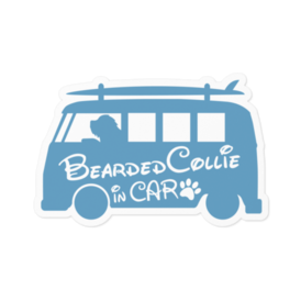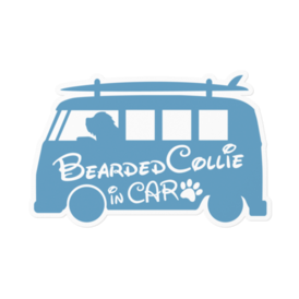【プリントステッカー】 Bearded Collie in CAR チョークブルー