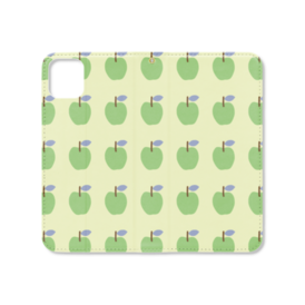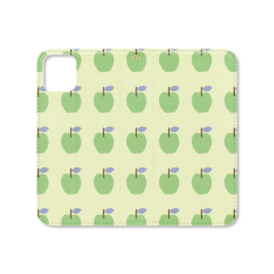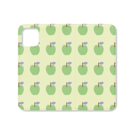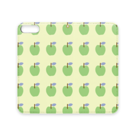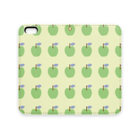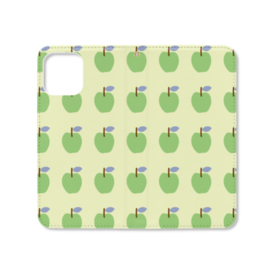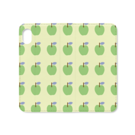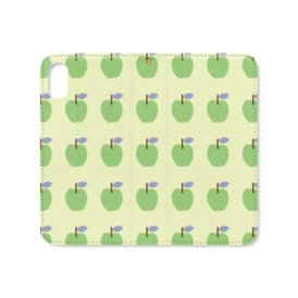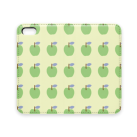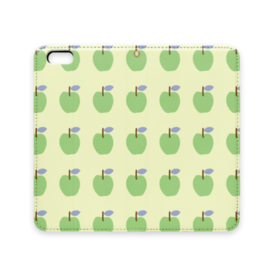 0089 北欧 青リンゴ パターン クリーム iPhoneケース 手帳型帯なし