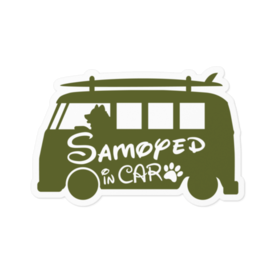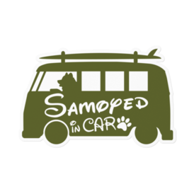 【プリントステッカー】 Samoyed in CAR オリーブグリーン