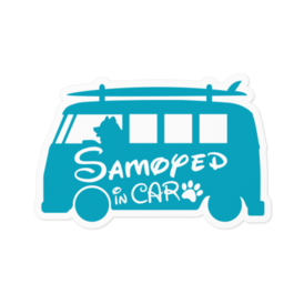 【プリントステッカー】 Samoyed in CAR ターコイズブルー