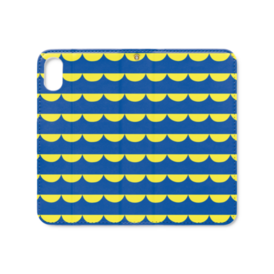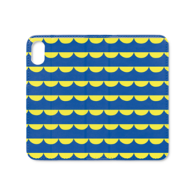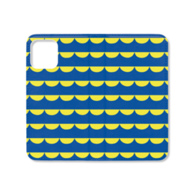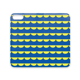 手帳型帯なしタイプのiPhoneケースです。 ストラップ穴があるタイプと、穴なしからお選びいただけます。 -+-+-+-+-+-+-+-+-+-+-+-+-+-+-+-+-+-+-+- 北欧風ウロコパターンのデザインです。 手描きのような不揃いな形がラフで可愛いデザイン。 パッキリとした青とイエローの配色がポップで元気な印象に仕上げました。 -+-+-+-+-+-+-+-+-+-+-+-+-+-+-+-+-+-+-+-