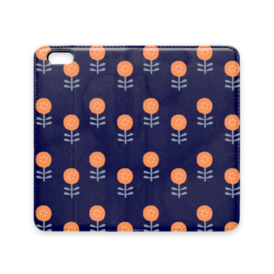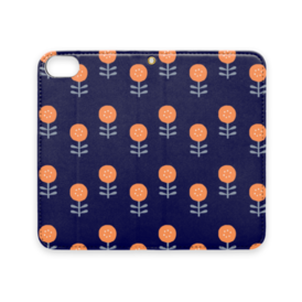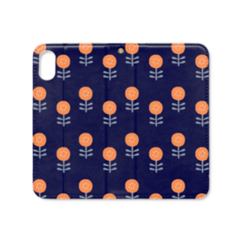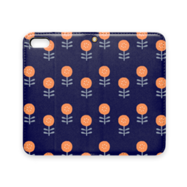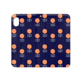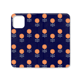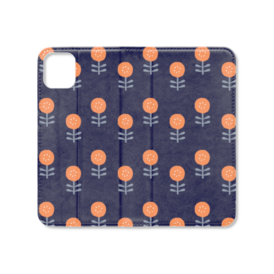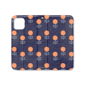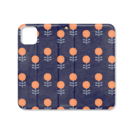 0103 北欧 花柄 ネイビー iPhoneケース 手帳型帯なし