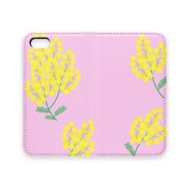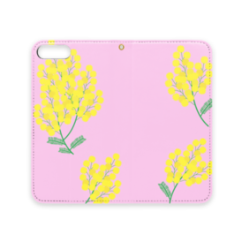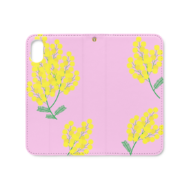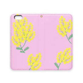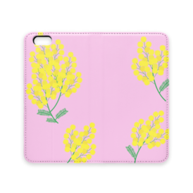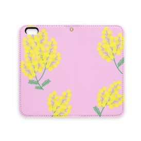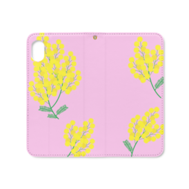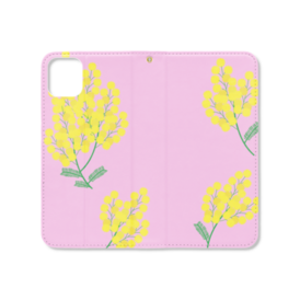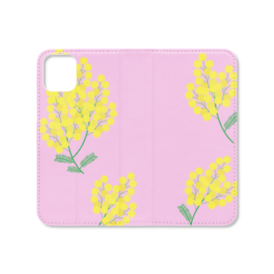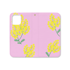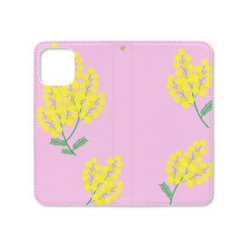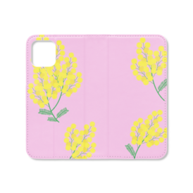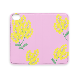 0113 北欧 花柄 ミモザ 2-2 ピンク iPhoneケース 手帳型帯なし