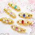 光を含み放つ 中心にはマーキス型のガラスジュエルがキラリ。 シンメトリーなデザインになる様にプリセットジュエルや半丸パール、 ラインストーンを配して。 シンプルで合わせ易い、上品なヘアクリップです。 ドレスにも、カジュアルにも使い勝手がいいですよ。 簡単挟むタイプのクリップタイプ。 ヘアアクセとしても勿論、ストール留めとして使用するのもオススメです。 幼SD~SD17位迄 ヘアクリップ横幅:約3,8cm マーキスプリセット(ガラス):5×10mm レクタングルプリセット(ガラス):2×5mm 半丸パール(アクリル):4.5mm ラインストーン(スワロフスキークリスタライズ/チェコプレシオサ):SS12 金具:ゴールドカラー(メッキ) ※ボンドを使用しています。 ※受注製作となります。 ※一部カラー材料在庫限り ※ドールは商品に含まれません。