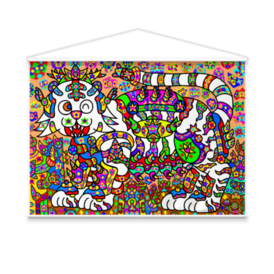 この商品はpixivFACTORYで作られた商品です。サンプル画像は完成イメージのため、実物と異なる場合があります。 四聖獣の一つであり、西を守護する聖獣です。属性は金であり、色は白となります。本来の白虎はシマウマのように白と黒のまだら模様なのですが、見ていて楽しい感じにしたくて、カラフルな模様で描きました。