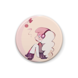 缶バッジ - 25mmヘッドフォンで音楽を聴いている女の子の絵です。 別カラーもあります。 #FUYU 藤井真理×石渡結花里