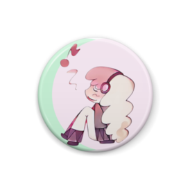缶バッジ - 25mmヘッドフォンで音楽を聴いている女の子の絵です。 別カラーもあります。 #FUYU 藤井真理×石渡結花里