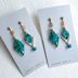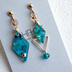 アクリルインクで模様を描いたアクリルインクアートシリーズです。 まず原画を作成し、最も良い模様の場所を切り取ってアクセサリーに加工するため 同じ色味または模様が一つと無い、世界で一つのアートアクセサリーです。 ターコイズブルーにゴールドの不規則なラインが入ったひし形のアシンメトリーイヤリングです。