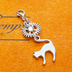 マスク・スマホチャーム アンティークシルバー 跳ね猫と歯車を組合せたチャーム ジャックピン追加可