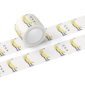 バナナりんふぇいが規則正しく並んだ柄のマスキングテープ 程良い距離感で配置されているので、マスキングテープとして使う他に、シールとして一人ずつ切り取っても使いやすいデザインです