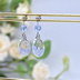 ドライフラワー入りのラウンドパーツに、アレキサンドライトカラーのビーズを添えて、シンプルな耳飾りをお仕立てしてみました。 青色のローズマリーに銀のブリオンを散らした、普段使いのしやすいアクセサリーに仕上がりました。 こちらのドロップパーツは、PRIMO PIATTOのけろしい様よりご提供いただきました。 ショップはこちらとなります: https://minne.com/@primopoatto ラウンドパーツはレジン製です。封入しているドライフラワーは徐々に退色していきますが、それも経年変化としてお楽しみください。 アレキサンドライトカラーのビーズはチェコ産のファイアポリッシュビーズを使用しました。 こちらはLED光源では薄紫、蛍光灯の下では薄水色にカラーチェンジするガラスです。 ポストピアスはスタッド部分のみステンレス、そのほかパーツは真鍮製のものを使用しております。 長さ:約3㎝ ※フックピアス/樹脂フックピアスへの変更は無料で承ります。 ご希望の場合はメッセージでご連絡ください。 ※アレルギー対応ピアスやイヤリングへの変更をご希望の場合には、以下のオプションを同時にご購入ください。 ・サージカルステンレス製金具に変更 https://yuu3004.booth.pm/items/4335135 ・ピアス・イヤリング金具 変更オプション https://yuu3004.booth.pm/items/4858199 ※minneでも販売中のため、タイミングによっては品切れとなる場合がございますが、予めご了承ください。