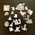 ★当方オリジナルキャラクターのミニシール。 漫画絵本『喫茶とかげ紳士・アップルパイの巻』の挿絵や書き下ろしイラストを使用したデザインです! 絵本はこちら⇒ https://m-karigari.booth.pm/items/4175737 表面にはつや消しフィルムが貼ってあり、肌触りの良い高級感ある仕上がりになっています。 手帳やステーショナリー、スマホケース、スクラップブックなどに、お気に入りのキャラを招いてカスタムしてみてください! ※シールは貼り剥がしタイプではありませんのでご注意ください。 【内容】 1パック36枚入り(全18種各2枚) 【材質】 普通紙、つや消しフィルム シール面:両面テープ使用。 【サイズ】 ・タテ約40㎜~20㎜ ※表記サイズは目安です。絵柄及びカットの仕上がりによってサイズは若干異なります。 【注意】 ※一つずつ手作業でカットしている為、同じ絵柄でも仕上がりには若干の差違がございます。 あらかじめご了承ください。 ※紙製品のため、湿気や火気にご注意ください。 ※当アイテムのデザインの複製、改変、転用、加工、素材として利用できる形での再配布は禁じます。