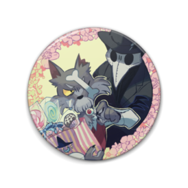 ototoiのオリジナルキャラクター、狼男のウォルフガング爺さんとカラスのエトヴィン(人型)の缶バッジです。