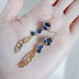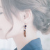1ペアのみ☆まるで蝶の羽のようなジルコニアチャームととんぼ玉ビーズが綺麗なピアス/イヤリング(青)