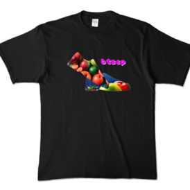 【祝 開店!! 期間限定割引価格】果物靴デザイン - Tシャツ 正面イラスト(ブラック 濃色)