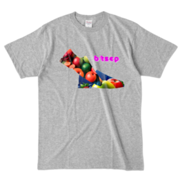 【祝 開店!! 期間限定割引価格】果物靴デザイン - Tシャツ 正面イラスト(杢グレー 濃色)