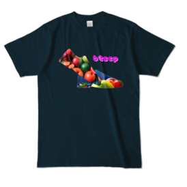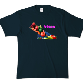 【祝 開店!! 期間限定割引価格】果物靴デザイン - Tシャツ 正面イラスト(ネイビー 濃色)