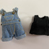 ねんどーるサイズのショートオーバーオールとタンクトップ黒のセットです。オビツ11とピコドー9にも着用可能です。