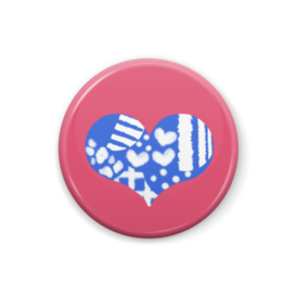 柄文字缶バッジ 「❤」 (青×赤ピンク)