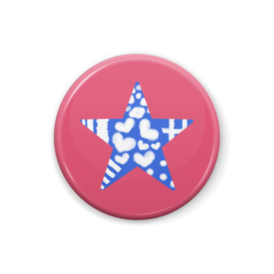 柄文字缶バッジ 「★」 (青×赤ピンク)