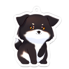 黒柴犬のアクリルキーホルダーです。 ちびキャラ仕様で可愛い仕上がりに。 (制作にAIツールを使用しています)