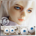 七宝グラスアイ ジェムタイプ(銀箔と透明釉薬使用) ふちどりに銀より線使用 直径・虹彩サイズは商品タイトル参照(直径/虹彩) ※0.5mm単位 計測部分によって0.5mm前後誤差あり カラー:上部ネイビー、下部ブルー、下部の一部にホワイト系、瞳孔ダークネイビー 特記事項:虹彩形状左右差、片目の瞳孔にごく小さな白い点 素材:銅板、ガラス(デザインにより銀箔や純銀線、銅線など使用) 共通のご説明は【商品について・諸注意事項】にまとめています。ご購入前にお読み下さい。 https://l-du-e.booth.pm/items/2993748 七宝グラスアイについて ・金属の土台にガラス質の釉薬を焼き付けたアイです。約800度の高温で焼成する焼き物で、経年劣化の心配はありませんが、温度変化や衝撃で割れる恐れがあります。 ・金箔・銀箔を表面に焼き付けたアイは、鋭利な物で強くこすると剥がれる場合があります。 ・焼き物のため、フチの部分は土台の金属が少し露出します。お取扱いにはご注意ください。 ・誤飲や怪我のおそれがありますので、ペットやお子様の手の届かない所に保管してください。 ・ハンドメイドにつき左右差や歪みがあります。 ・ドールに装着時隠れる白目部分の凹凸や気泡、色ムラ等は不良ではありません。