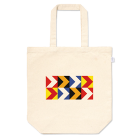 世界のシェブロン(カーブにある矢印)を組み合わせたトートバッグです。 サイズ感は下記からご確認ください。 受注生産のため発送までお時間をいただいております。発送予定日をご確認の上、ご購入ください。 この商品はpixivFACTORYで作られた商品です。サンプル画像は完成イメージのため、質感や色味などが実物と異なる場合があります。