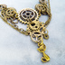 アンティークゴールド 猫と多数の歯車を組合せた多層多重の本格的スチームパンクネックレス 長さ調整可