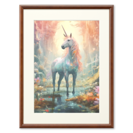 ユニコーンの複製画です🦄✨ 額縁に入っているのでインテリアにピッタリ☺️ お部屋に飾ると、美しいユニコーンさんが夢に現れてくれるかも!? 額縁:ブラウン アクリル板付属 印刷紙:国産画材紙 この商品はpixivFACTORYで作られた商品です。サンプル画像は完成イメージのため、実物と異なる場合があります。