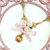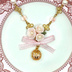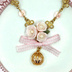 123 薄ピンクのバラブーケネックレス(かごチャーム)