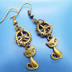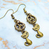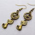アンティークゴールド 猫と小さな歯車を組合せたコンパクトなスチームパンク風ピアス