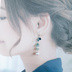 小さいガラスビーズを間に挟んだまるで朝露のようなブルーグリーン色が素敵なアパタイトのミニタンブルをメインにぷっくり可愛いしずくビーズやコロンとしたすずらんビーズなどを合わせたお洒落な揺れるタイプのピアス/イヤリングとなっております☆ メインのお色はまるで森の中にひっそりとある澄み切った渓流のようなブルーグリーン色、シルバー金具と合わせて癒し系な色合いでまとめました☺ さりげなく合わせたぷっくりしずくビーズがアクセントになったちょっぴりユニークなデザインに仕上げました。 アレルギー対応のピアスやイヤリングへの変更についてはご注文時にオプションよりご希望金具をお選び下さい。 *アパタイトは絆を強める・繋がるといったエネルギーを持つと言われています。 家族の絆や恋人同士の絆、チームや組織を強めるのでチームの中心となる方が持つといいと言われています。 心と身体にたまった不要なものをきれいに洗い流し、新たに力強く健康なパワーをチャージして、やる気を高めてくれるとされます。 考えが分散して上手くまとまらない時などにもおすすめです。 アパタイトは他にも… *進むべき方向がわからない *周りの環境や意見に振り回されたくない *自分らしさを取り戻し、表現したい *ストレスからくる感情の波を鎮めたい *心身をリフレッシュさせたい *コミュニケーション能力を高めたい *人間関係を円満にしたい などの効果もあると言われています。 ※天然石には石によって割れやすいものや、キズなどがついているものが御座います。 出来るだけ作品に使用する石は綺麗なものを選んでおりますが、まれにキズやインクルージョンが含まれているものがございます。 予めご了承頂けます様にお願いいたします。 ※こんな方におすすめ♪ *大切な方へのプレゼントに *涼しげなお色がお好きな方に *アパタイトがお好きな方に *すずらんやしずくモチーフがお好きな方に ☆アパタイト(天然石) ミニタンブル 約6~8mm程 ☆ガラスビーズ クリアホワイト ボタンカット 4mm ☆ガラスビーズ オペークグレー ボタンカット 4mm ☆ファイアポリッシュチェコビーズ エメラルドVA 4mm ☆しずく型チェコビーズ ディープシー(表はブルー、裏側はシルバー) 9x6mm ☆すずらんビーズ オーロラ プラスチック製 約6x10mm ☆スペーサー シルバー ☆座金 シルバー ☆9ピン ☆Tピン ☆丸カン ☆ピアス用金具(フック式☆シルバー) 長さは約6cmとなっております。(1cm程のピアス金具を含む)