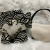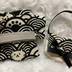 13cm/16cmぬい用 ぬい服 和装 浴衣 お出かけセット 青海波と猫 白黒 バッグ付