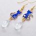 エナメルの青い猫モチーフにお日様と夜空の三日月を描いた左右で異なる絵柄の大人可愛いピアスです 甘くなりすぎない可愛さがある猫モチーフに透き通る輝きのティアドロップ型ガラスクリスタルを吊り下げて輝きをプラスしています マットゴールドとブルーのカラーの組合せによって華やかでありながらもコンパクトなサイズにまとめたピアスに仕上がっています コンパクトなピアスなので普段使いはもちろんのことちょっとしたお出かけにもおすすめのアイテムです ※素材はモチーフは亜鉛合金にメッキ、金具はスチール製ですので金属アレルギーの方はご注意ください ※こちらはフックピアスをネジバネ式イヤリング(マットゴールドカラー丸皿タイプ)に変更が可能です ※金属アレルギーになりにくいとされるサージカルステンレスのフックピアスに変更できます 「素材」 亜鉛合金:メッキ ガラス・クリスタル スチール等(ピアス金具など) 「寸法」 全長(ピアス部含めず):約35mm 猫サイズ:約16mm×13mm 重量:(ピアスの場合・1個で) 約1.8グラム 【ご注意】 ※ご使用のモニターの色の違いにより、実際の商品と色味が若干異なる場合がございます NN-ER331