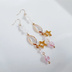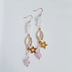 可愛いお星様が揺れるスタイリッシュでシャープな形が素敵なマーキス型のアクリルフレームストーンに光の角度によってうっすらホワイトからブルー色のシラーが見えるロイヤルブルームーンストーンのミニタンブル、いちごミルクの様なマーブルピンク色の可愛いファイアポリッシュチェコビーズなどを合わせたお洒落な揺れるタイプのピアス/イヤリングとなっております☺ メインのお色はまるで甘いお菓子のようなホワイトとピンク色の2色、ゴールド金具と合わせてふんわり可愛い色合いでまとめました。 アレルギー対応のピアスやイヤリングへの変更についてはご注文時にオプションよりご希望金具をお選び下さい☆ *ムーンストーンはその名の通り、月に光を宿したような風合いから古くから神秘的な力を秘めた石として人々から愛させていました。 月は女性性を意味しており、ムーンストーンは女性をサポートしてくれる石として知られています。 悲しみや不安、怒りなどで情緒が不安定になっている時に身に着けると気分が穏やかになっていき、心に平和を取り戻してくれると言われています。 ムーンストーンは恋愛の石としても幅広く知られており、身に着けていると愛する人の出会いと恋愛を成就させ、幸せな結婚へと導いてくれると言われています。 ムーンストーンは他にも… *女性性を高める *トラウマの解消 *感受性を高める *月のエネルギーを受容する *愛を伝える などの効果もあると言われています。 ※天然石には石によって割れやすいものや、キズなどがついているものが御座います。 出来るだけ作品に使用する石は綺麗なものを選んでおりますが、まれにキズやインクルージョンが含まれているものがございます。 予めご了承頂けます様にお願いいたします。 ☆ロイヤルブルームーンストーン(天然石) ミニタンブル 約6~8mm ☆ファイアポリッシュチェコビーズ ライトピンク シルキーホワイト 6mm ☆ガラスビーズ アラバスターピンクオーロラ ボタンカット 4mm ☆アクリルフレームストーン クリスタルxゴールド マーキス 15x7mm ☆メタルビーズ ゴールド ☆丸カン ☆9ピン ☆Tピン ☆ピアス金具(フック式*ゴールド) 長さは約7.5cmとなっております。(1cm程のピアス金具を含む)