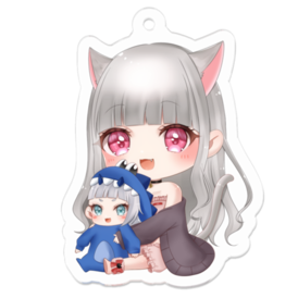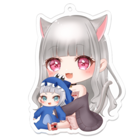 アクリルキーホルダー - 100 x 100 (mm)にゃん汰がだふちを抱っこしてる可愛いアクリルキーホルダー!