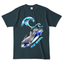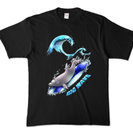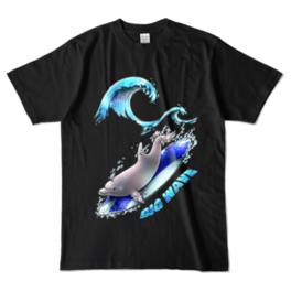 【カラーTシャツ:黒:紺】イルカ(青)/片面・両面